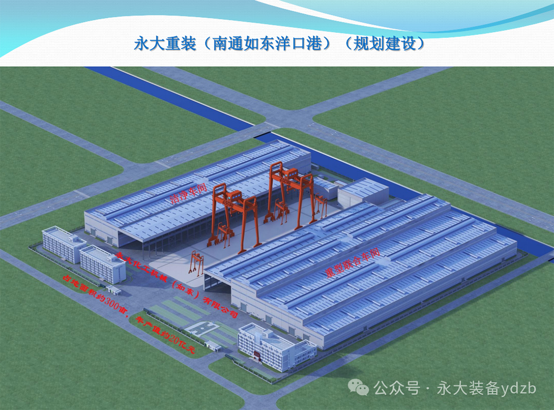 永大(如東)重型化工裝備項目總投資10億元,占地272畝,總建筑面積約12萬平方米,預計2025年12月竣工投產(chǎn)。建成后以專、大、重型產(chǎn)品為主,以海上平臺撬裝、工藝包撬裝為特色服務海內(nèi)外業(yè)主,結(jié)合金牛碼頭的海運優(yōu)勢實現(xiàn)年產(chǎn)6萬噸以上重型化工裝備,建成后年產(chǎn)6萬噸重型裝備,全面達產(chǎn)后可實現(xiàn)應稅銷售11億元,稅收9000萬元左右。
